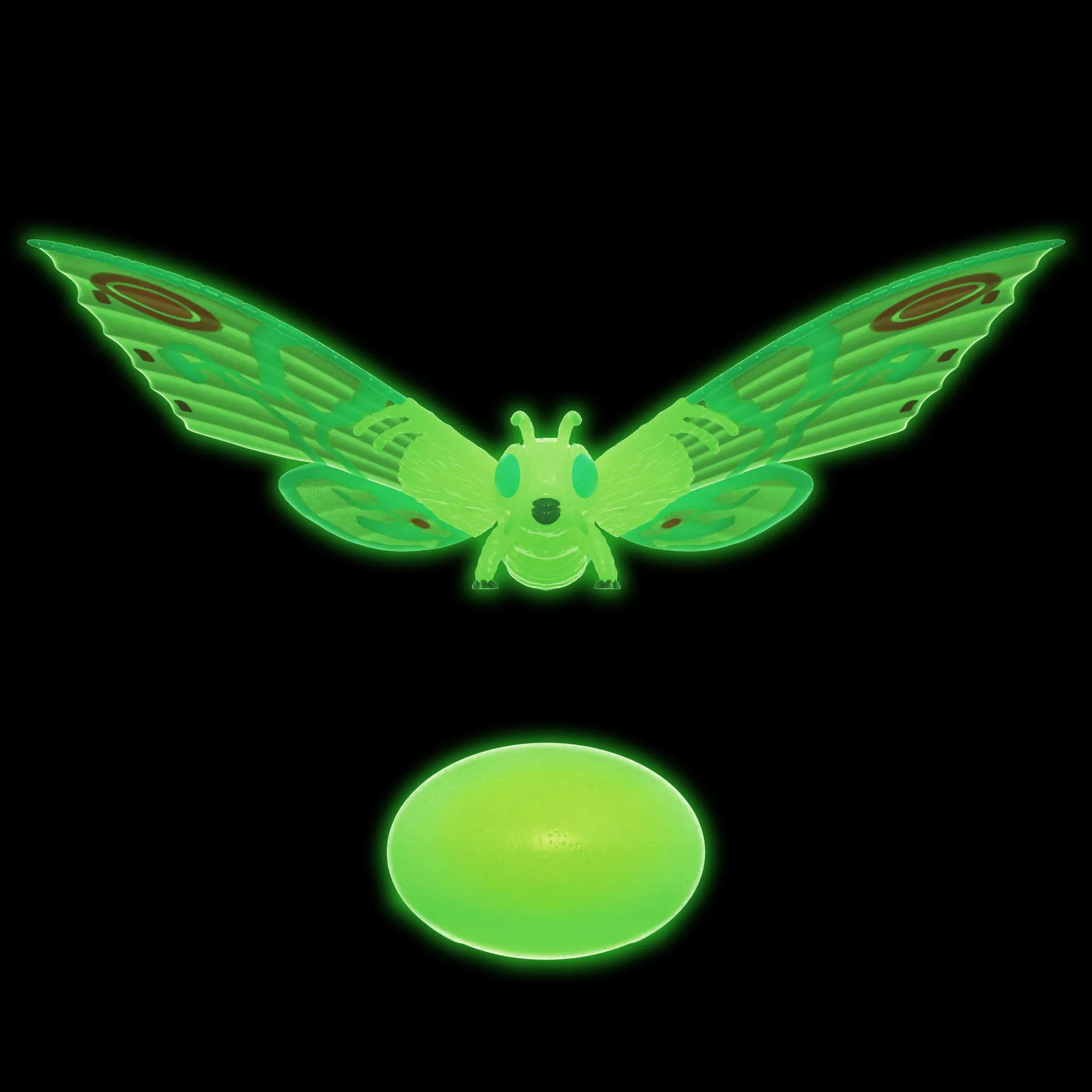 The 3.75” scale articulated glow-in-the-dark Mothra ReAction Figure measures almost 4” wide and includes her egg accessory. The 3.75” scale articulated Rodan ReAction Figure features outstretched wings measuring over 5” wide. Both come on special die-cut cardbacks and are sure to brighten up your Toho collection!